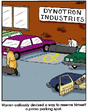 • Being fat and lazy shouldn’t count as a handicapped condition.  It is obvious that some of these people could use the extra walking to drop a few of those extra pounds.